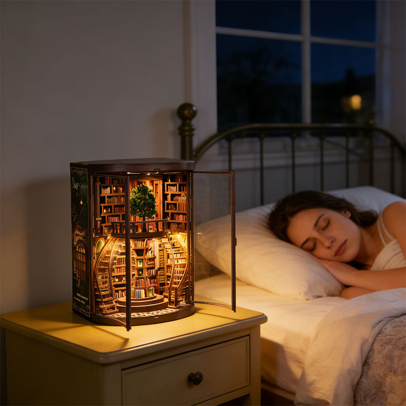 DIY Wooden Book Nook Kit - Miniature Bookend with Wisdom Rings, Home Decor Craft & Birthday Gift Idea