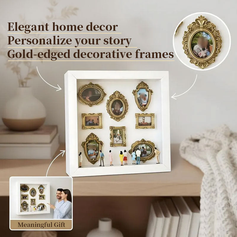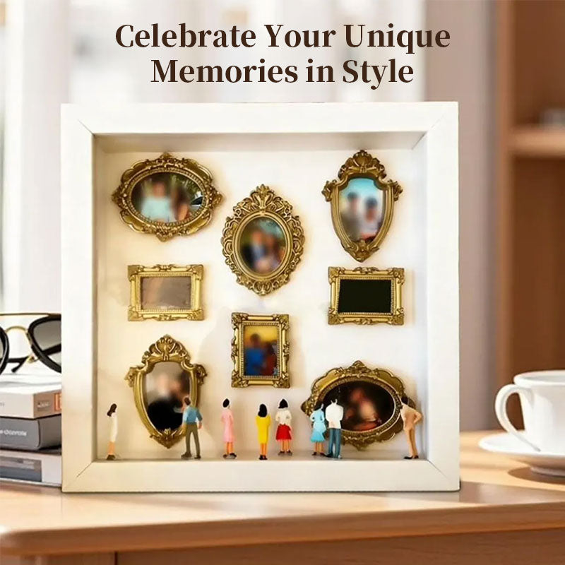 DIY Mini Museum Shadow Box Kit | Anniversary Wedding Memory Display with Gold Frames & Figurines